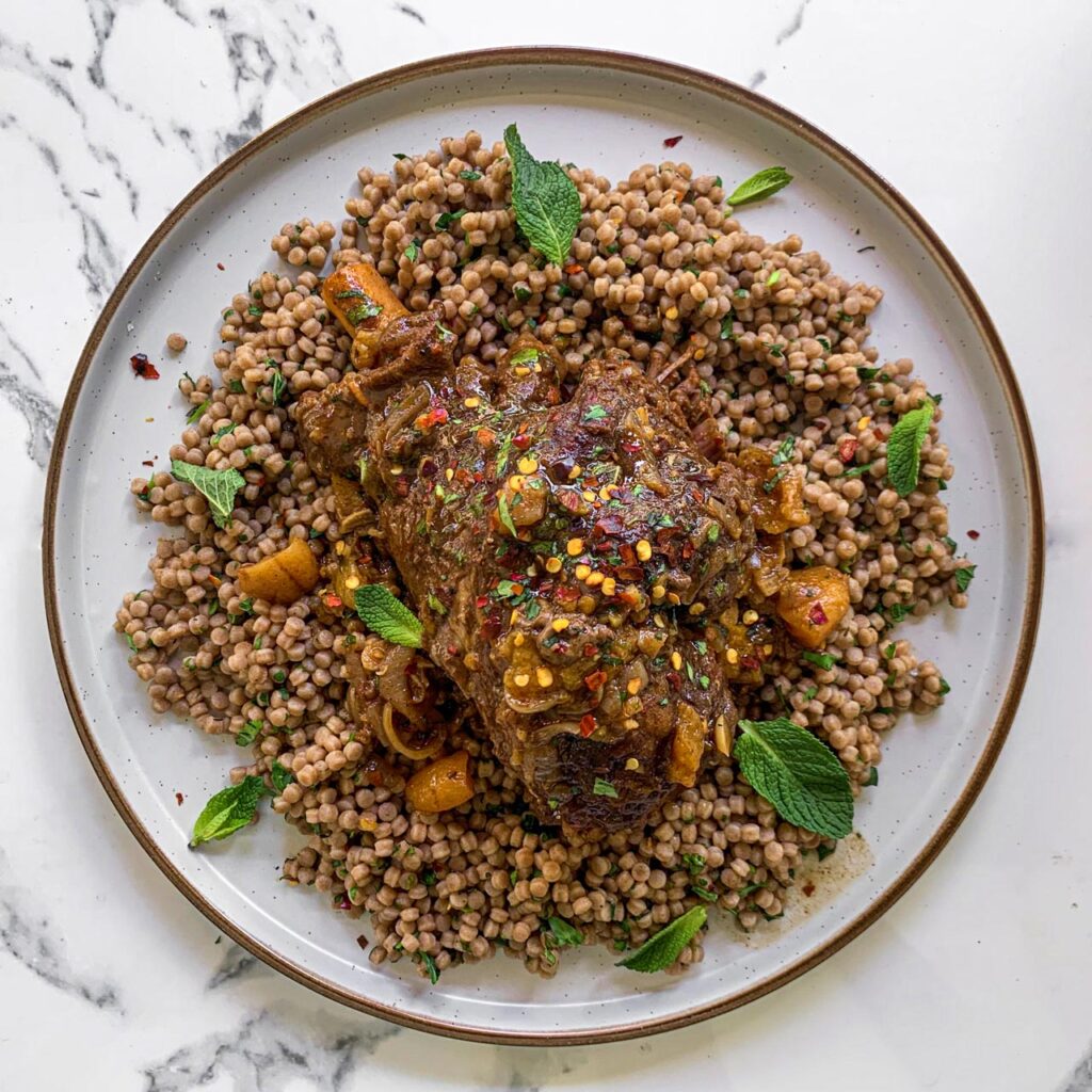 Langzaam gestoofd lamsvlees met Noord-Afrikaanse kruiden
